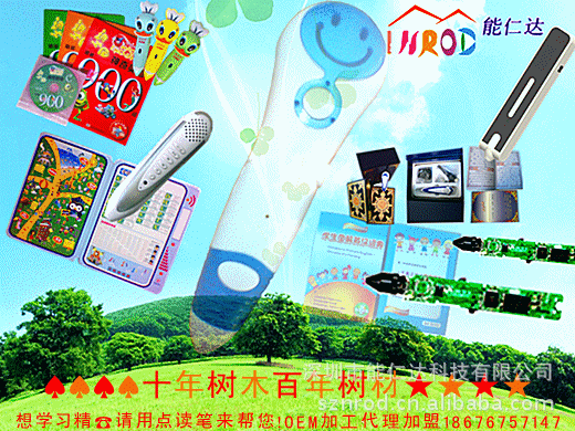 r一、点读笔专业生产、有声图书开发、外壳开模注塑:承接OEMODM订单,我们提供:1、专业的产品制造、2、成熟的技术方案、3、严格的质量检测、4、灵活的订单数量、5、优质的全程服务!