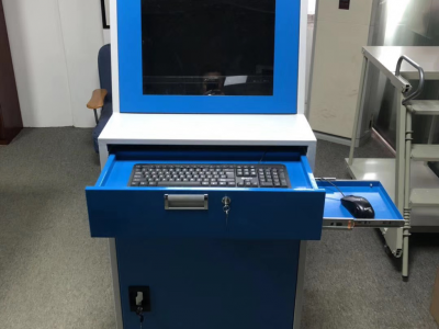 电脑柜:电脑柜,涉及一种办公用具,属折叠拼装组合类家具产品。特征结构在于:柜顶板盖合在桌面板的两头盖合在柜侧板、柜后板的上端,柜顶板的两头与柜侧板的上端木榫连接;柜侧板、柜后板为用对开合页连接的折叠结构,柜门与柜侧板挂钩合页连接;层板与柜侧板用塑胶组合器、木榫连接,中立板与上、下的层板均用塑胶组合器、木榫连接;键盘盒用滑轨公、母榫与柜侧板前后抽动连接,键盘板用滑轨公、母榫与键盘盒的侧板前后抽动连接;抽屉为用塑胶组合器、木榫连接的拼装结构,与其外的侧板用滑轨公、母榫前后抽动连接。同现有技术相比有明显进步:一是结构更简单更适用,便于包装与运输;二是采用木榫、滑动式拆装扣、挂钩合页、挂钩、塑胶组合器连接件,它们的结构简单、现场拼装更加简便。