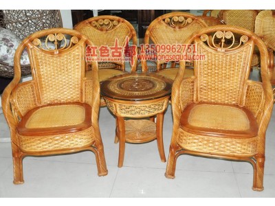 【宝贝名称】:批发酒店家具藤茶几 **接待沙发藤椅 皇冠椅 三件套 【宝贝特点】:藤棒框架,厚重结实,并且采用宽藤片编织,凉爽舒适,坚韧耐用,扶手和靠顶部分为藤枝排列和藤皮包裹,藤的韵味充分得到体现,冬天加上布垫,也温馨暖和。我们所有产品都是刚才生产一线下来打包发给你们。因为藤需要晒干后在进行编制,有些脆。你们拿到宝贝后用温水加盐搽一搽。基本5天内**会非常光亮漂亮。藤的韧性也会很好。大家超市里面看到藤觉得很漂亮,那时因为使用过摆设过,每天有人搽所以觉得很漂亮。【宝贝规格】:皇冠藤椅:长宽高62*50*92cm; 座高:43cm 藤茶几:长宽高50*50*54cm。 藤制品属手工制作,尺寸会有偏差,望预知、理解。【宝贝材料】:印尼藤 宝贝用料是来自印度尼西亚的天然藤料。印尼藤坚韧饱满,不易爆裂,杂色少,是制作藤制品的一级原材料。藤是生长于热带森林植物。编织藤较长可超过185米。