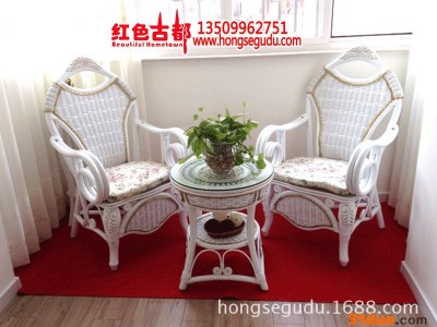 【宝贝名称】:批发酒店沙发扭藤转椅 高品位藤椅 公主椅 白色宫廷椅三件套 【宝贝特点】:藤棒框架,厚重结实,并且采用宽藤片编织,凉爽舒适,坚韧耐用,扶手和靠顶部分为藤枝排列和藤皮包裹,藤的韵味充分得到体现,冬天加上布垫,也温馨暖和。 我们所有产品都是刚才生产一线下来打包发给你们。因为藤需要晒干后在进行编制,有些脆。你们拿到宝贝后用温水加盐搽一搽。基本5天内**会非常光亮漂亮。藤的韧性也会很好。大家超市里面看到藤觉得很漂亮,那时因为使用过摆设过,每天有人搽所以觉得很漂亮。 【宝贝规格】:椅子:长宽高64*67*114cm茶几:直径55cm,高60cm。藤制品属手工制作,尺寸会有偏差,望预知、理解。 【宝贝材料】:印尼藤 宝贝用料是来自印度尼西亚的天然藤料。印尼藤坚韧饱满,不易爆裂,杂色少,是制作藤制品的一级原材料。藤是生长于热带森林植物。编织藤长可超过185米。