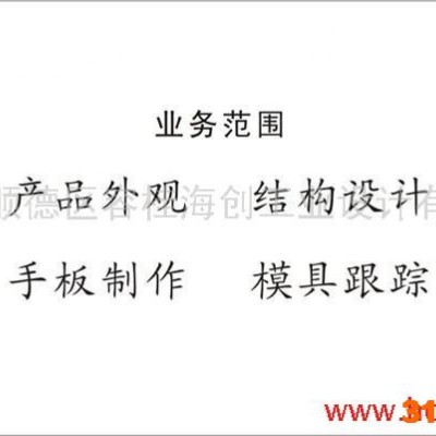 佛山市顺德区海创工业产品设计有限公司成立于2008年,坐落于**的小家电之都佛山市顺德区。本公司是一家专业的产品设计公司,为广大客户提供包括产品外观设计、结构设计、创意设计、手板制作、模具跟踪、市场调查、产品策划、新材料工艺研究等一站式工业设计服务,有丰富的小家电、医疗器械、灯具、机械等产品设计经验,是全国多家知名企业长期合作伙伴。