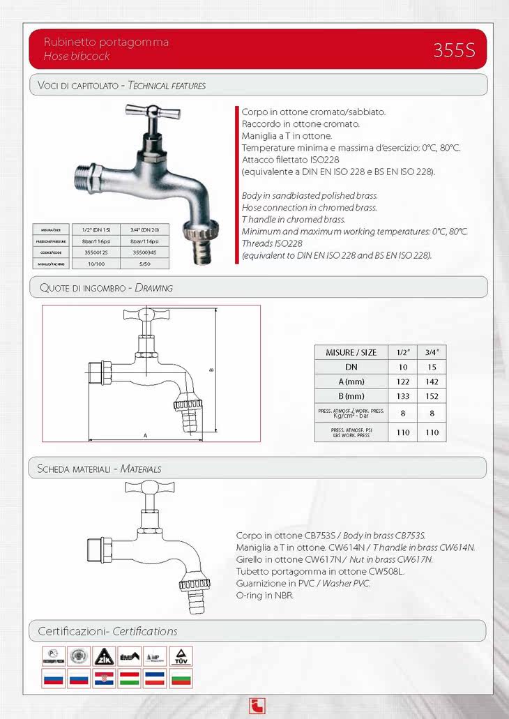r r r款式.355S - 软管水**Hose bibcockr r整体喷砂面/镀铬黄铜