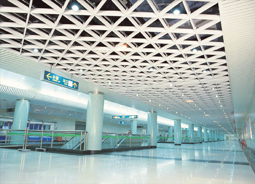 三角铝格栅天花吊顶适用范围 铝格栅一般适用于展厅、写字楼、商场、酒吧、车站、地铁等简易装饰的大空间。