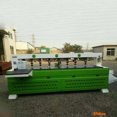 1.床身采用梯形钢管设计,机器运行更平稳;2.采用模块式设计、可选择四主轴、双主轴加钻包丶圆盘自动换刀丶圆盘自动换刀加钻包丶四种模块单选;搭配,自动下料,双台面,工作效率高,节省人工,一位小工操作即可.3.三轴均采用台湾原装上银方轨,XY轴采用国内知名高精度斜齿齿条,Z轴采用台湾原产螺母TBI丝杠;4.自动润滑系统,独立机箱,真空吸附台面;5.机器可自动完成上料,打孔,雕刻,切割,下料的工作,可大大节约人工成本,提高加工效率,是家具行业不可或缺的好帮手。 产品特点: 省时;机器加工速度快,板材固定以后,机器根据输入板材尺寸自动进行切割,无需多余人工操作,有效提高加工效率; 省料;可选配自动排版软件,只需输入板材尺寸,软件对其排版进行优化,板材使用效率可达到百分之九十以上,提高板材使用效率,降低原材料成本。 省工;以前的推台锯等下料设备,需两个人操作,工人需要不停的转动板材,工作强度大,开料机一人可操作多台机器,切工作强度小,从而节省了人工费用; 下料质量高;板材切割无崩边现象且尺寸准确,为后期安装提供了有效保障;
