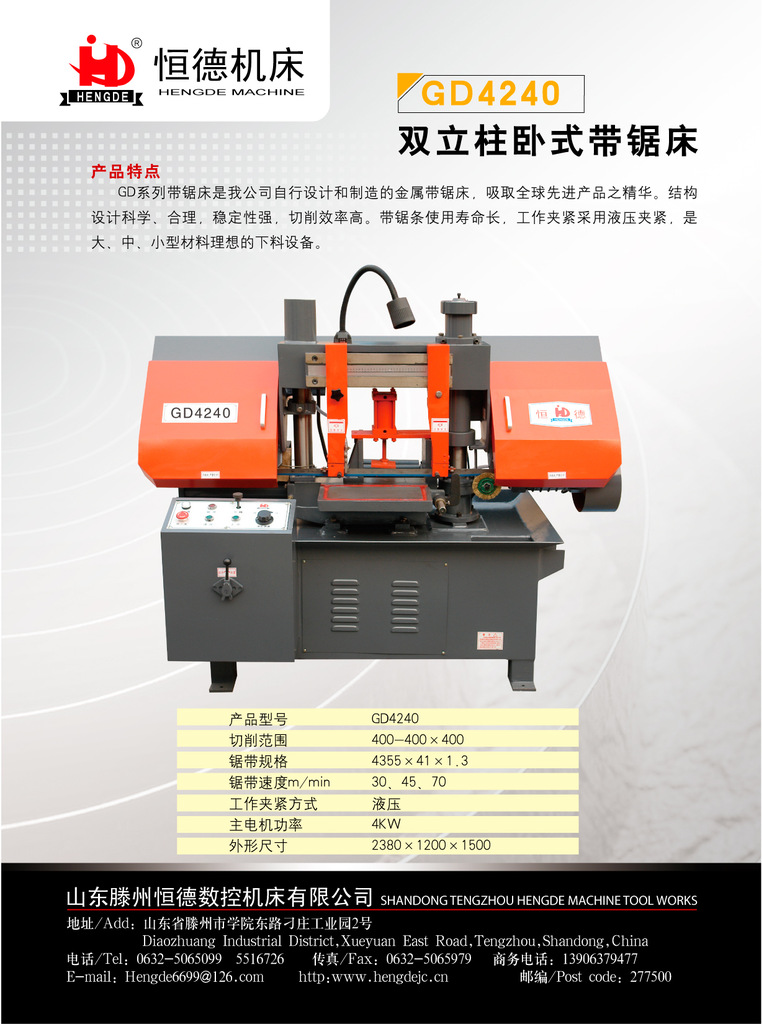 | 类型:带锯床 | 主电机功率:4(kw) |