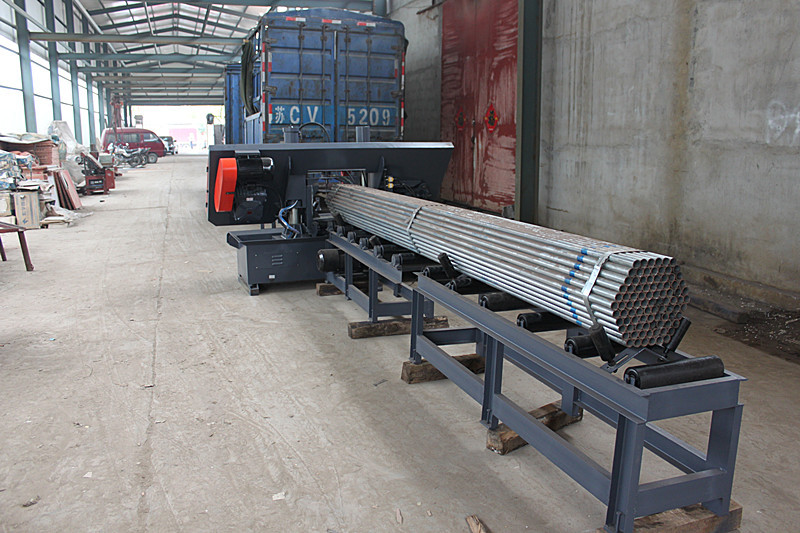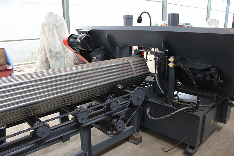 (送料架配套拍摄不赠送)金属带锯床主要部件有: 底坐;床身、立柱;锯梁和传动机构;导向装置;工件夹紧;张紧装置;送料架(费用另算);液压传动系统;电气控制系统;润滑及冷却系统。