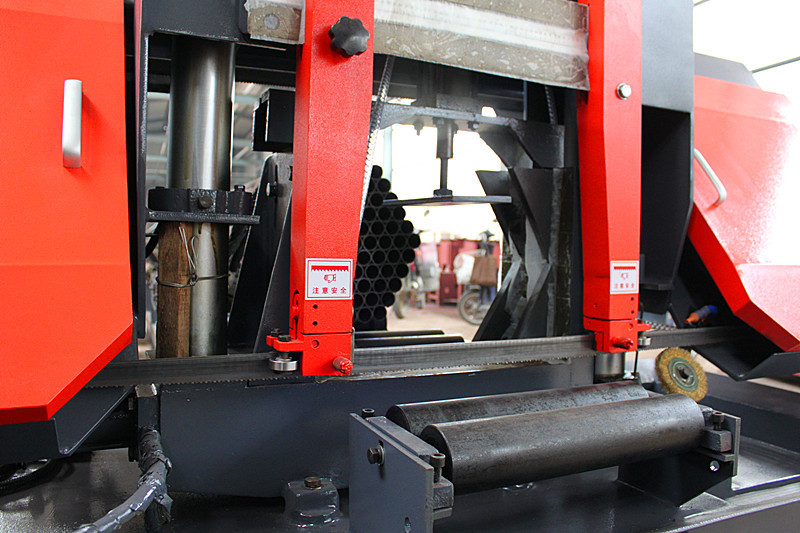 本厂多数锯床锯轮防护罩现已改良为侧开,对更换锯条的效率和安全有良好的改良。