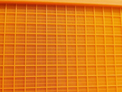 聚氨酯筛板是一种以聚氨酯为原料生产的网状制品。 筛板的孔状为:条缝、矩形、圆形、正方形 主要性能及特点: 1、耐磨性能好,使用寿命长,其耐磨性为钢制筛板的3~5倍,为普通橡胶筛板的5倍以上。 2、维修工作量小,聚氨酯筛板不易损坏,使用寿命长,因此可以大大降低维修量和停产检修损失。 3、总成本低,尽管同一规格(面积)的聚氨酯筛板比不锈钢筛板一次性投资高(约2倍),但由于聚氨酯筛板寿命是不锈钢筛板的3~5倍,而且维修和更换次数少,所以总成本并不高,经济上也是很合算的。 4、耐湿性能好,可在水为介质的条件下工作,且在水、油等介质的情况下,聚氨酯与物料的摩擦系数降低,更利于透筛,提高筛分效率,并可避免潮湿微粒的粘附,同时因磨擦系数降低,磨损减少,使用寿命提高。 5、耐腐蚀,不易燃,无毒无味。 6、由于筛孔设计合理,筛板制造工艺独特,极限尺寸的颗粒不会阻塞筛孔。 7、吸振性能好,消声能力强,可减少噪音,并可使筛上物在振动的过程中不易破碎。 8、由于聚氨酯二次振动的特点,聚氨酯筛板具有自清理作用,因此筛分效率高。 9、节能降耗,聚氨酯比重小,比同样大小钢筛重量轻得多,从而减轻了筛机负荷,节约电耗,并可延长筛机寿命