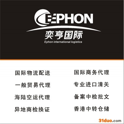r------------------------------综合物流方案专家,顾问专属秘书服务------------------------------ r r r 按天津奕亨进口物流多年的服务积累,国际采购进口,无论是开信用证、代理支付海外订金、提单中转、香港库存中转等,或者是国际货物到中国中转、出口货品退港等业务,奕亨团队都可以快速代理完成客户委托之任务。奕亨的国际商务代理服务,还可以体现在通过海外物流代理的作用,代理客户处理海外港口的当地物流项目、货款转帐代理等业务。在当今物流服务竞争激烈的情况下,奕亨提供的国际商务代理服务,对主流的进口物流业务,产生强有力的辅助作用。按奕亨运营研究,全国的电子商务文化,由沿海大城市向二线城市延伸,同时向内地延伸。商机聚然,国际物流业也务必与电子商务相接。奕亨BTB进口物流推广模式,正是通过无偿提供进口物流方案满足货主网络索取的单向电子商务模式.这样的办公推广理念,节能方便、24小时的弹性无缝交流。基于此,奕亨可大力推进BTB网络电子商务的进口物流服务。全国进口贸易的业务,大宗性的原材料采购的业务,属于**级、部属级的专营企业或大型进出口企业采购,其进口物流需要锁定码头和船公司。相关制造业企业的进口采购,大部分是由自身的船务系统和报关队伍来完成。目前的经济状态,随着国际采购贸易的升温,将会有全球采购机制的形成,国内大中小的采购商,将会委托专业的进口物流公司代理进口。大型的采购公司,相当重视 “口岸申报仓储配送” 等纵向后续环节的分包;中小型的采购公司,注重横向物流环节的分摊和外包。奕亨进口服务,结合电子商务传播的文化,以**速度和进口升温市场结合。r r r ------------------------------综合物流方案专家,顾问专属秘书服务------------------------------