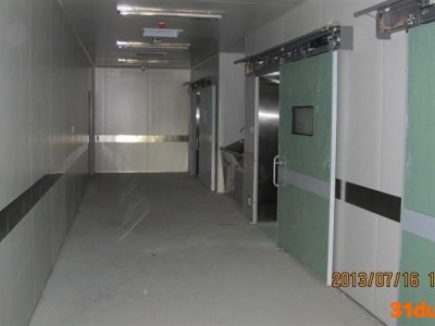 【产品规格】按客户要求加工订制 【产品用途】保护人体防止受到射线侵害 【适用范围】医院放射科、学校实验室和核工业环境等 【产品分类】 1、平开防护门,可分为内开门和外开门,门体的结构和材料是根据放射线机的功率大小(kv)及门洞大小来决定的。 2、推拉铅防护门,开启方向是沿着墙壁平行移动,门体的结构与材料是根据放射线机的功率大小(kv)及门洞大小平决定的,门框结构与平开门结构有所区别。 3、电动铅防护门,一般适合较大的门体,由于重量较重,人力开启比较吃力,所以采用电动开启方式 。开启形式可分为平开式和平移式。 【产品介绍】 1、射线防护门体表面采用不锈钢拉丝面板装饰,中间无接缝,提高装饰效果。 2、防护层采用整体轧制铅板,保证整体无接缝、无气泡。 3、射线防护门配门机连锁、工作灯、警示牌,配有遥控器及红外线防撞装置和控制元件。 4、射线防护门的电机为变频电机,电动防护门采用电动、手动及遥控三位一体的联锁装置、感应装置可实现门扇手动开关功能,遥控开关功能。停电后恢复供电时电动门自动关闭,有效起到防盗作用。