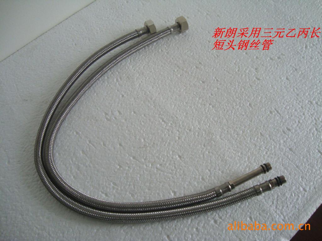 r r r 新朗软管采用了进口三元乙丙内管。 普通软管容易漏水,爆裂。寿命短! r r r 外管采用了坚韧的钢丝,长短头的搭 r r r 配使安装更加方便。两根高品质的 r r r 软管让你使用起来更无后顾之忧! r r r