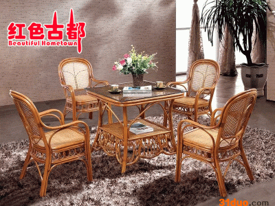 【宝贝名称】:红色古都藤编茶馆家具**特色生态 **藤艺家具休闲茶桌椅五件 【宝贝特点】:水曲柳框架,厚重结实,并且采用宽藤片编织,凉爽舒适,坚韧耐用,扶手和靠顶部分为藤枝排列和藤皮包裹,藤的韵味充分得到体现,冬天加上布垫,也温馨暖和。我们所有产品都是刚才生产一线下来打包发给你们。因为藤需要晒干后在进行编制,有些脆。你们拿到宝贝后用温水加盐搽一搽。基本5天内**会非常光亮漂亮。藤的韧性也会很好。大家超市里面看到藤觉得很漂亮,那时因为使用过摆设过,每天有人搽所以觉得很漂亮。【宝贝规格】:无扶手茶水椅:35*35*68cm。 藤制品属手工制作,尺寸会有偏差,望预知、理解。【宝贝材料】:印尼藤 宝贝用料是来自印度尼西亚的天然藤料。印尼藤坚韧饱满,不易爆裂,杂色少,是制作藤制品的一级原材料。藤是生长于热带森林植物。编织藤**长可超过185米。