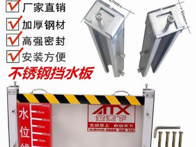 挡水板为定制产品,下单前请与客服联系! 不锈钢挡水板采用不锈钢材质,可视性强且实用性高!上部贴的反光条为工程级反光膜专业制作而成,反光膜加背胶纸牢固耐用。 挡水板安装十分简单,先将膨胀钉穿入卡槽上的安装眼儿,再将两侧的卡槽沿门框将膨胀钉平行固定到门框两边墙体上,卡槽即安装成功!使用时可把挡水板顺卡槽的内径滑入卡槽之中,起到防止水进入的作用!不用时将挡水板取出,固定在墙体上的卡槽不影响门的正常开关使用,不用取下。是地下室、仓库、车库、地铁等场所的必备产品。