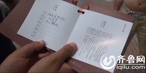 合格证上,除了手写的品名、规格和材质外,“检验员”、“等级”、“出厂日期”等都是空白。(视频截图)齐鲁网6月3日讯(记者 唐福晨 刘洋)章丘的徐先生对红木家具情有独钟,2015年12月底,他和朋友花36万在周村一家卖场购入一套红木桌椅。