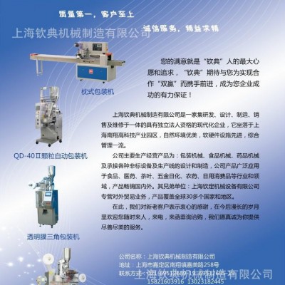 厂家颗粒称重包装机 松子瓜子定量灌装机 花生米种子包装机郑州 超声波商标分条机 全自动果蔬汁饮料生产线 果汁饮料灌装机 饮料机械 食品包装机械,日用品包装机械,饼干包装机械,面包包装机械,蛋糕包装机械,钦典包装机 厂家供应五金挂钩,S钩,通用金属挂钩,货架挂钩 供应广州西格全自动五金称重包装机 **轴承枕式包装机,五金制品塑料件包装机,汽车配件包装机 钦典QD-250五金配件轴承包装机 暖宝宝枕式包装机 自动翻斗式包装机小五金包装机立式包装机 新型废纸挤包机 半自动纺织品打包机 立式薄膜挤块机效果视频