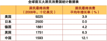 (1)中国已跃升全球第五大居民消费国,消费行业前景值得关注。1999年以来,中国的居民消费增速年均呈现两位数增长,2008年跻身全球前五大居民消费国之列。根据国家统计局2010年2月发布的数据,2009年全年中国GDP增长8.7%,其中最终消费的拉动达到4.6个百分点,超过外贸出口成为拉动经济增长的第二大动力,消费产业的发展前景向好。