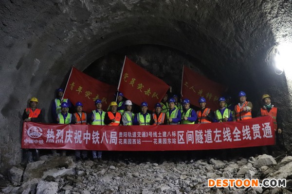 4月21日15时许,伴随着悬臂掘进机刀盘缓缓破土而出,经过建设者1200多天的艰苦施工,由中铁八局贵阳轨道交通3号线号线花果园西站至花果园东站区间(花花区间)隧道左线天顺利贯通。至此,贵阳轨道交通3号线“花花区间”施工进度达87%,全线贯通指日可待。