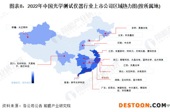 我国光学测试仪器行业相关企业多聚集于东南沿海地区,该地医疗、军工、汽车和手机行业较为发达,对光学设备需求较高,由此推动了光学测试仪器行业的需求。